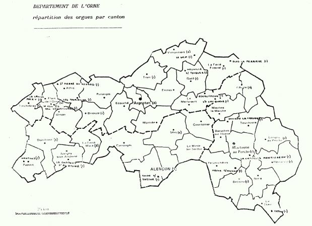 Vous aurez peut-être du mal à lire la carte ci-dessous. Si vous zoomez sur les deux cantons de La Ferté-Macé et de Juvigny sous Andaine, vous verrez dans le premier l’indication de deux orgues (il s’agit des grandes orgues et du petit orgue de l’église de La Ferté Macé) et dans le second de l’instrument de l’église de La Chapelle d’Andaine. Tessé la Madeleine et, a fortiori,Bagnoles de l’Orne n’existent pas.