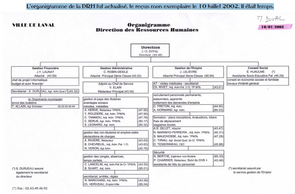Comment un organisme comme la Ville de Laval a-t-il pu continuer à fonctionner dans une telle ambiance de désorganisation, pour ne pas dire plus ? Ce n’est que grâce à l’expérience et à la conscience professionnelle des personnels que les services purent continuer à donner malgré tout satisfaction à la population.