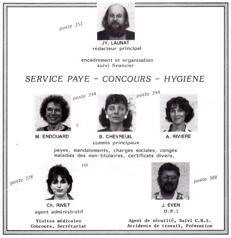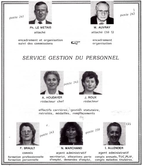 De cette période, je me souviens de la réorganisation de la DRH en 1990 : poursuite de l’informatisation, fusion gestion et paye, service concours, formation et sécurité …