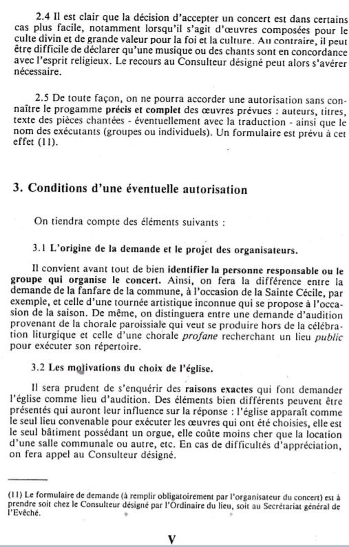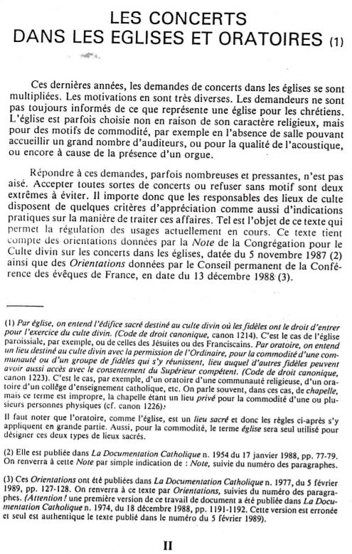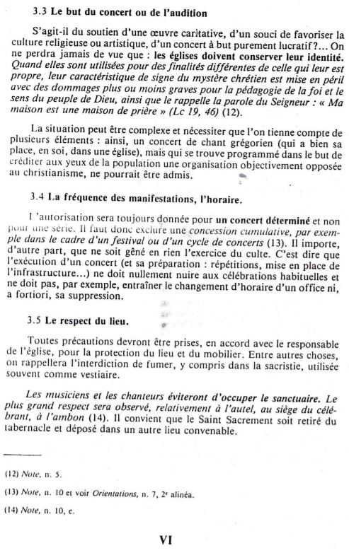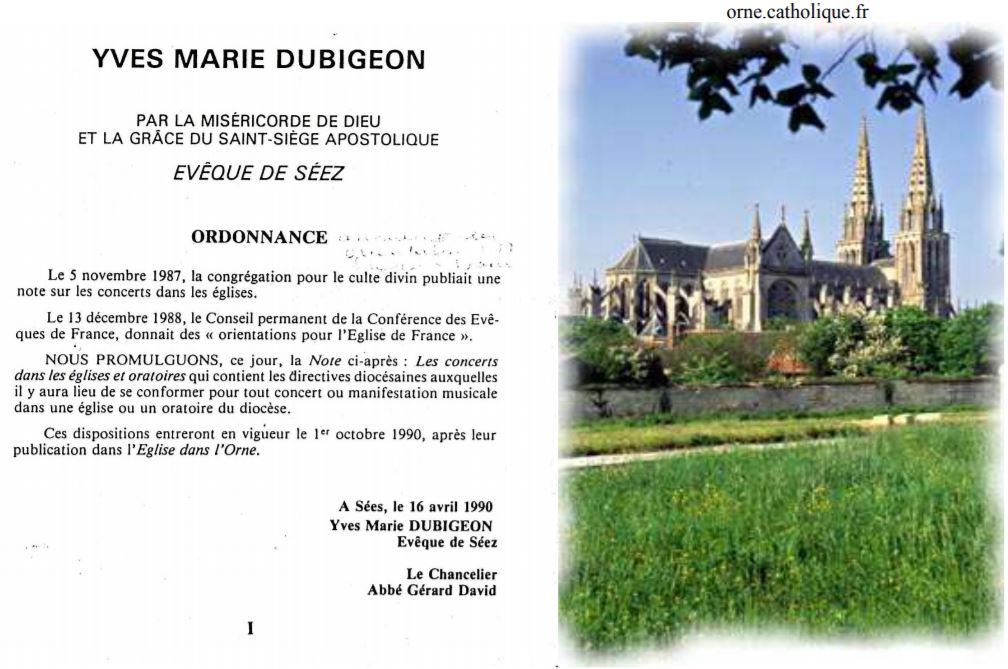 Beaucoup de fidèles (et même peut-être de prêtres) diocésains en ignorent sans doute l’existence. Mais il existe des directives ecclésiastiques en matière d’organisation de concerts dans les églises.