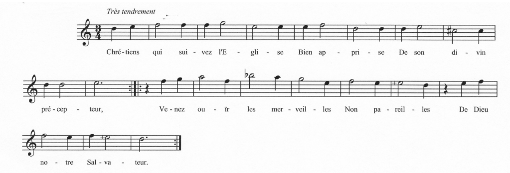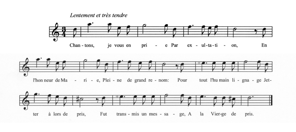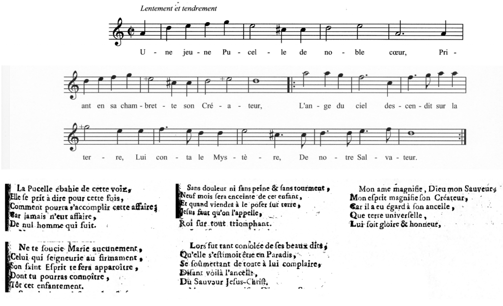 Curieusement, on fait rarement montre d’une préoccupation semblable pour les Noëls français. Certes, il y a peu de problèmes de vocabulaire, mais les paroles de ces Noëls anciens ne nous sont plus connues aujourd’hui. Et le risque existe de contresens musicaux. On a vite fait par exemple de couper un mot en deux sans s’en rendre compte. Indépendamment de ces aspects techniques, le plaisir est véritable de connaître l’histoire racontée par ces chants dont on connaît l’air, mais pas souvent les paroles. Certains sont des petits bijoux de poésie ou d’humour. Souvent écrits dans des tessitures élevées, ils exigent le recours à une voix suffisamment haute.
