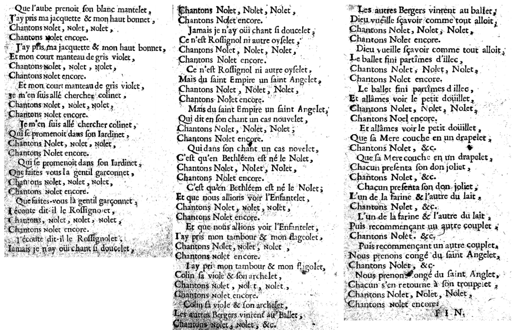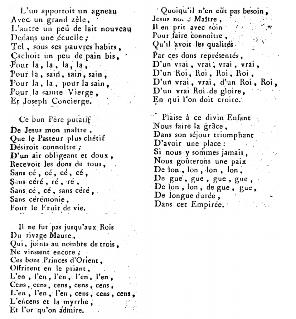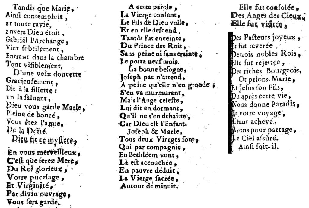 Les textes anciens des douze Noëls publiés par Louis Claude Daquin en 1757 et principalement destinés à l’orgue sont particulièrement intéressants.