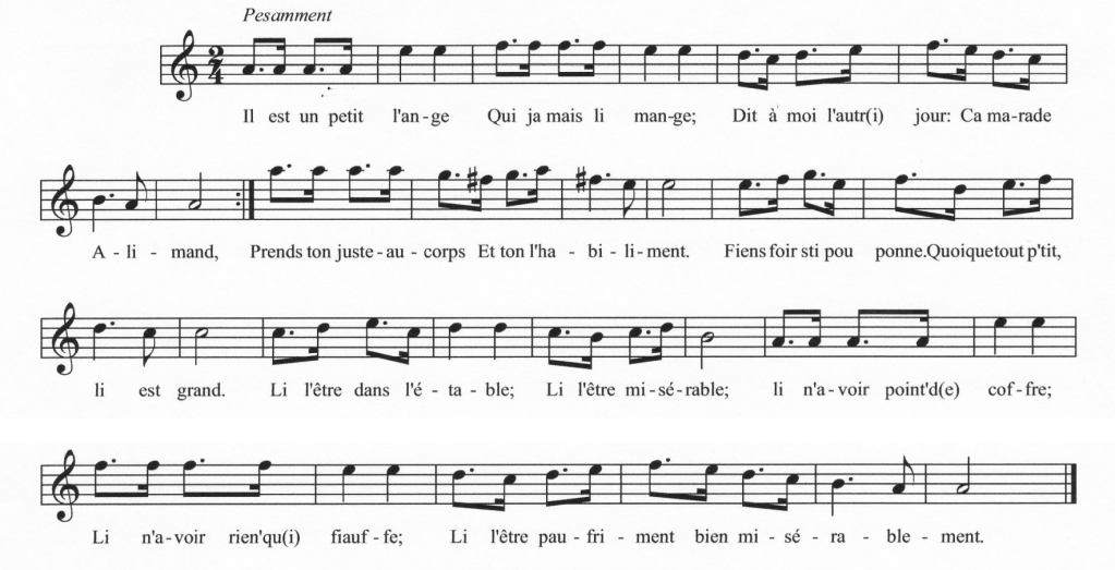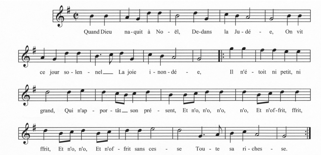 Je n’ai pas trouvé de paroles anciennes correspondant à la mélodie de ce Noël qui me donne plutôt le sentiment d’être inspiré d’une pastorale italienne. J’observe d’ailleurs que c’est le plus court du recueil de Daquin. N’aurait-on pas tendance à le jouer trop précipitamment ?