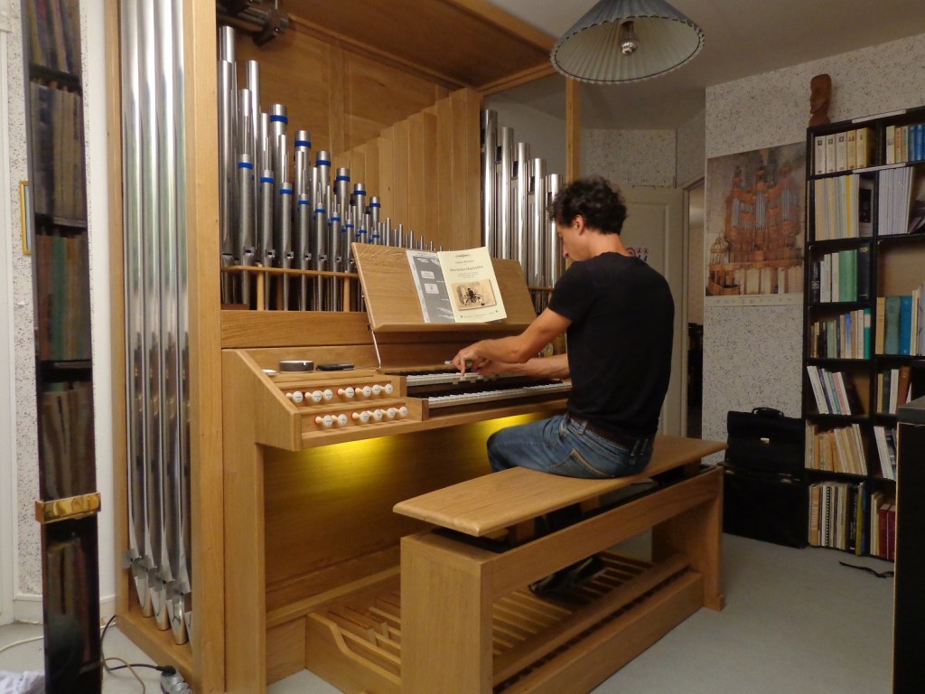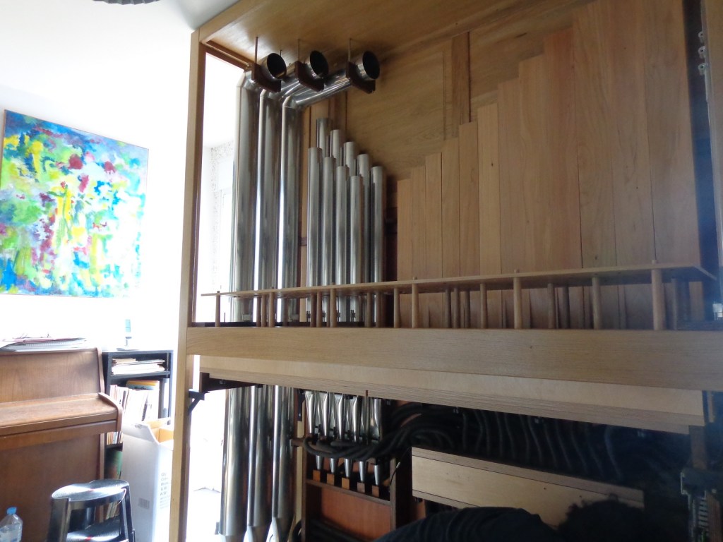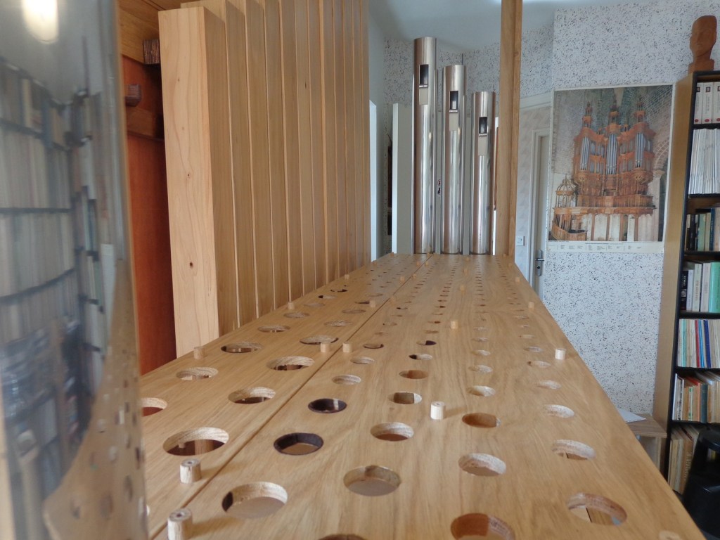 Tout ceci pour vous dire que dès notre arrivée à Juvigny, j’avais déjà en tête d’avoir un orgue à tuyaux à la maison. Je fouinais sur Internet sans trouver quelque chose qui correspondit à ce que je cherchais. Je voulais un instrument de 2 claviers pédalier, mais avec un nombre de jeux significatif, quitte à faire l’impasse par exemple sur les jeux d’anches, sans renoncer pour autant au 16 pieds de pédale.