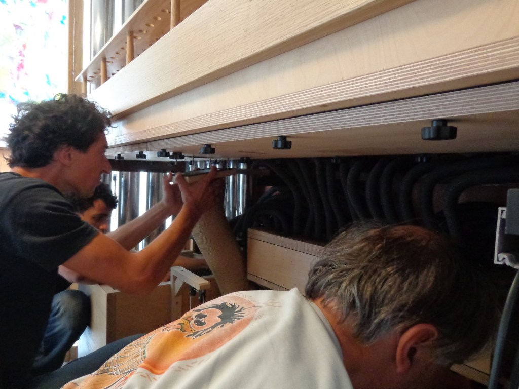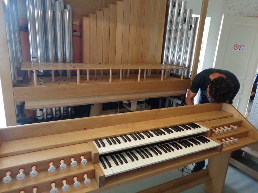 C’est en cherchant dans les orgues d’étude que je découvris le site de Daniel Birouste de Plaisance du Gers et de son « Modulorgue » www.modulorgue.com/ . Je recommande vivement aux amateurs d’explorer ce site et les sites dérivés. Vous y ferez connaissance avec la manufacture d’orgues de Daniel Birouste et y découvrirez l’essentiel des explications techniques et la description de la version de base du Modul.Org B2. Je commandai le 20 Septembre 2014 pour être livré à peu près un an plus tard, non sans avoir choisi quelques options facultatives et obtenu quelques modifications sans incidences de coût.