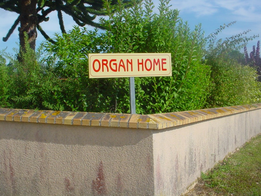La maison de Juvigny sous Andaine où mon épouse et moi-même nous installâmes fin 2002 pour nous rapprocher de Bagnoles de l’Orne est située « rue de La Guerdière ». Dans cette rue, il n’existe pas de numérotation officielle des maisons. Certains utilisent des numéros du lotissement baptisé « résidence » sans alternance des deux côtés de la rue, le dit lotissement n’étant situé que d’un côté. Il y a aussi en contrebas le lieu-dit « La Guerdière » dont les habitants revendiquent jalousement l’appellation. Bref, il y a intérêt à être connu du facteur et à prier le ciel pour ses remplaçants éventuels. Faute de numéro, nous fîmes le choix de donner un nom à la maison. Ce fut « Organ Home », solécisme anglicisant inspiré de « Organ at home », et non de « The organ’s house ».