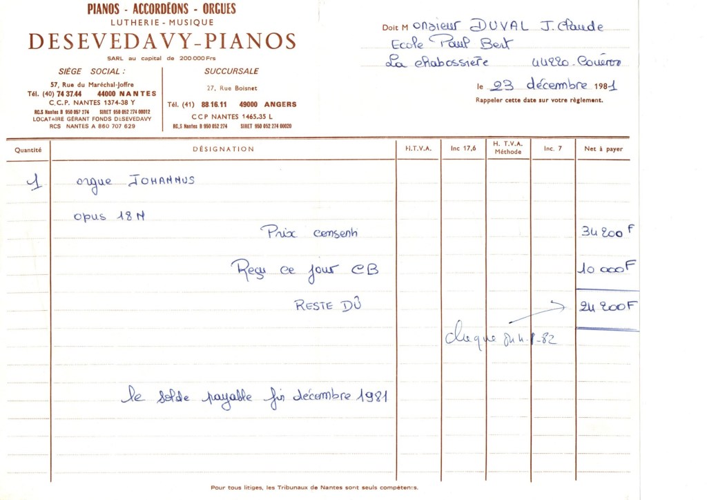 Orgue Auguste Tolbecque (1830-1919) donné par la chapelle de l’institut de la Persagotière à Nantes. Transfert réalisé par Nicolas Toussaint. 2 claviers pédalier et compte 13 jeux. Inauguration le 15 septembre 2018 par Florence LADMIRAULT