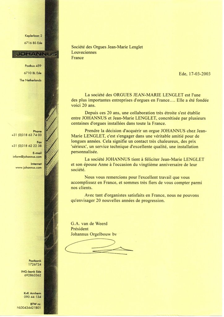 Tel un point d’orgue, je conclurai avec cette annotation manuscrite de Jean-Sébastien Bach sur la page-titre de sa Bible : « Dans la musique religieuse, Dieu est toujours présent avec sa grâce ». Transposons : « Par le sacrement de mariage, Dieu sera toujours présent… avec sa grâce » ! Alors, Hélène et Jean-Claude, recevez aujourd’hui l’amour qui vous unit tel un vrai cadeau du Seigneur qui va consacrer votre union. Et s’il faut en conclusion formuler un vœu, nous vous disons à tous les deux : soyez heureux en cette étape de votre vie qu’il vous est donné de vivre.